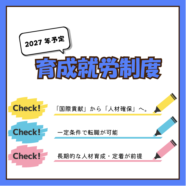 2027年4月より技能実習制度は「育成就労制度」へ移行予定です。